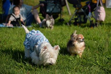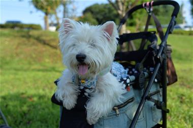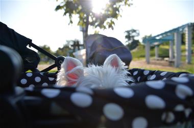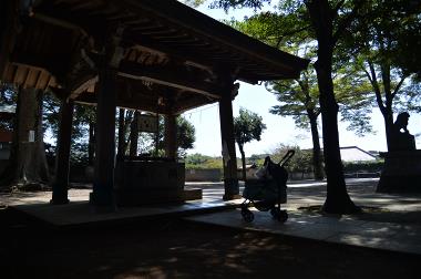 | 帰りに、福岡堰さくら公園に寄ったけど、 暑くて日陰から出れません。 大喜びしていたのは、葵だけでした。(笑) |